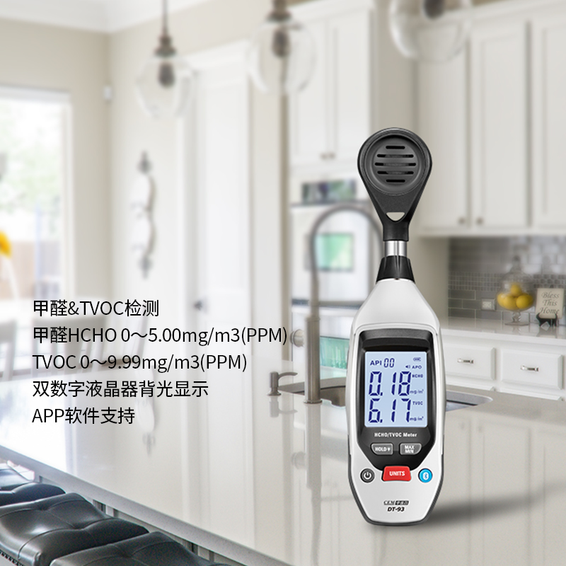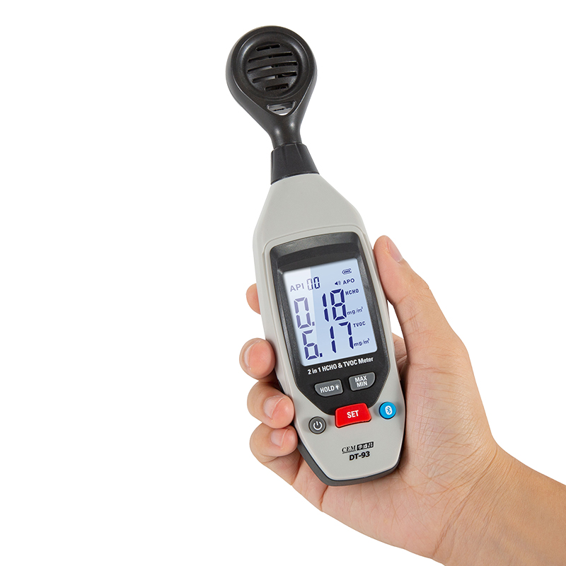 CEM華盛昌推出智能型迷你環(huán)境測試儀DT-93,為環(huán)境質(zhì)量多維度的測量檢測應(yīng)用上提供了產(chǎn)品解決方案和技術(shù)支持。這里所指的“多維度”,指對環(huán)境質(zhì)量的甲醛/TVOC濃度的多指標(biāo)一站式智能測量。