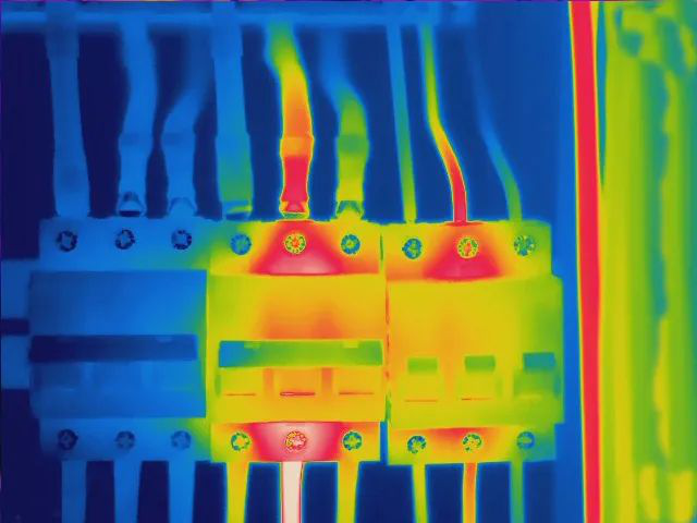 注:使用CEM紅外熱像儀能夠清楚地看到過熱點,并能自動跟蹤找尋過熱點,快速發(fā)現(xiàn)短路的地方。