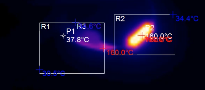 (160°高溫保險熔斷瞬間熱像圖)