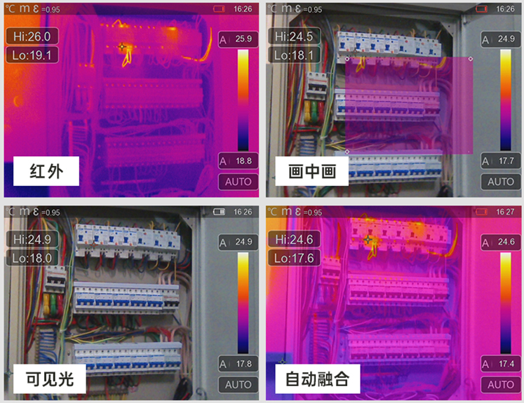 紅外圖像和可見光圖像的組合顯示,能更精準地識別溫差,讓工程師可以更好觀察接觸點長期處于高溫狀態(tài)的情況,減少工作量。因為工程師可根據(jù)可見光圖片來判斷紅外圖片中熱點的未知,并自動生成報告,減少操作時間,提高工作效率。