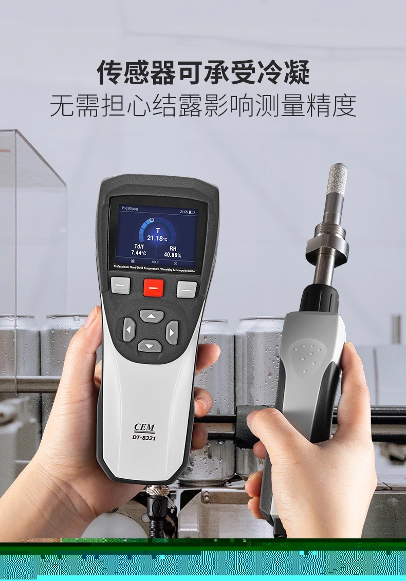 CEM DT-8321是CEM華盛昌新設計、研發(fā)和制造的一款高精度專業(yè)手持式露點儀,精度高范圍廣,能在較寬的測量范圍內(nèi)準確測量露點溫度,探頭可直接插入加壓過程中,并快速響應測試過程環(huán)境條件,為工業(yè)露點測量應用提供準確快速的測量。產(chǎn)品廣泛應用于實驗室、電力電氣、SF6氣體測量、精密制造、化工制藥等領域的大溫度、大壓力范圍內(nèi)的直接過程露點測量。
